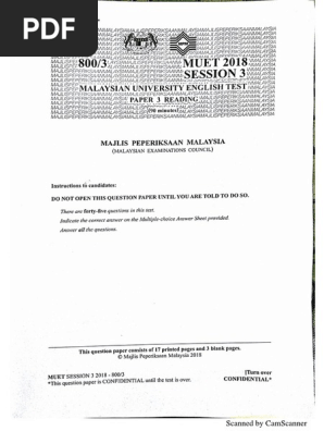 S3 Soalan Sebenar Muet S3 2018 Reading Pdf Pdf